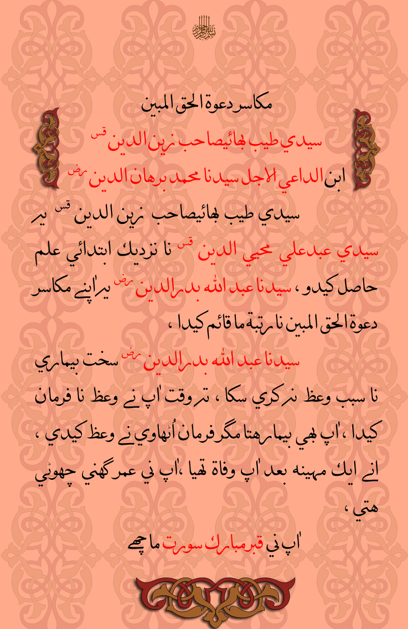 CURRENTLY VIEWING : Syedi Taiyeb Bs Zainuddin (A.Q.), Surat