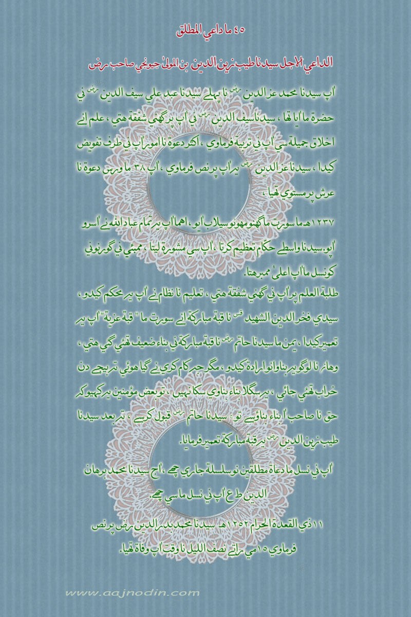 CURRENTLY VIEWING : Syedna Taiyeb Zainuddin (RA) In Surat (India) 45th Dai Al Mutlaq
