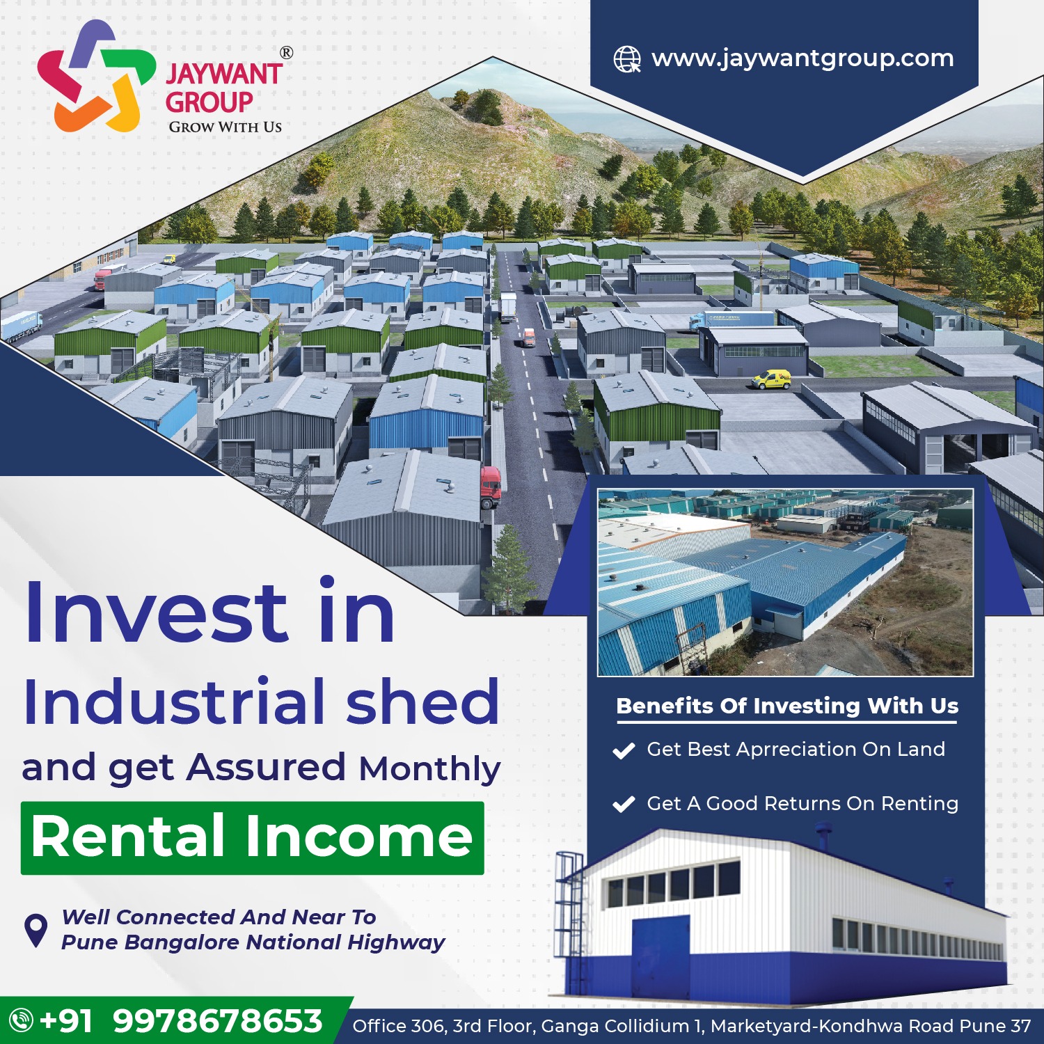JAYWANT GROUPJAYWANT GROUP At Jaywant Group we bring you industrial plots in Khedshivapur area that assure a brighter future. You can setup your own business here or get an assured rental income if you want to own it as an investment. It's the assurance of amazing returns! Buy 5000 sq ft industrial zone plot+shed & get upto 44,000/- to 60,000/- per month assured rental income with good ROI. Our new road touch plots location are at Ranje & Harishchandri on Pune Bangalore highway.. So call us fast for site visits to both these new sites.. Contact:- Team Jaywant +9199786 78653 Website :https://jaywantgroup.comMobile Number :+919978678653Whatsapp Number :+919978678653Date :05-Feb-23Image File :